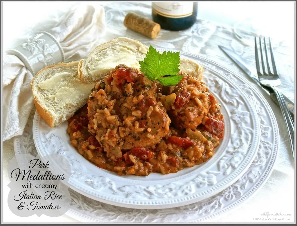 PORK MEDALLIONS with CREAMY ITALIAN RICE & TOMATOES