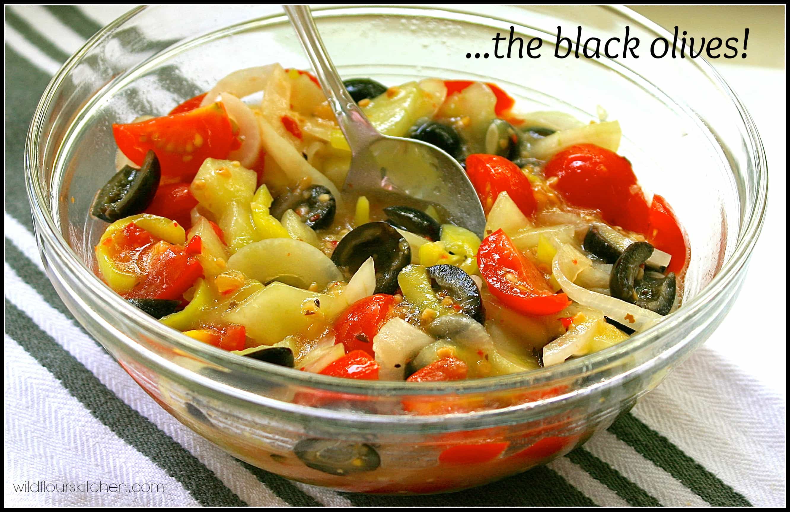 But one thing we both agree on, is the black olives! I think they round out this salad perfectly! You can use black/ripe or kalamata, or even green pimiento-stuffed!