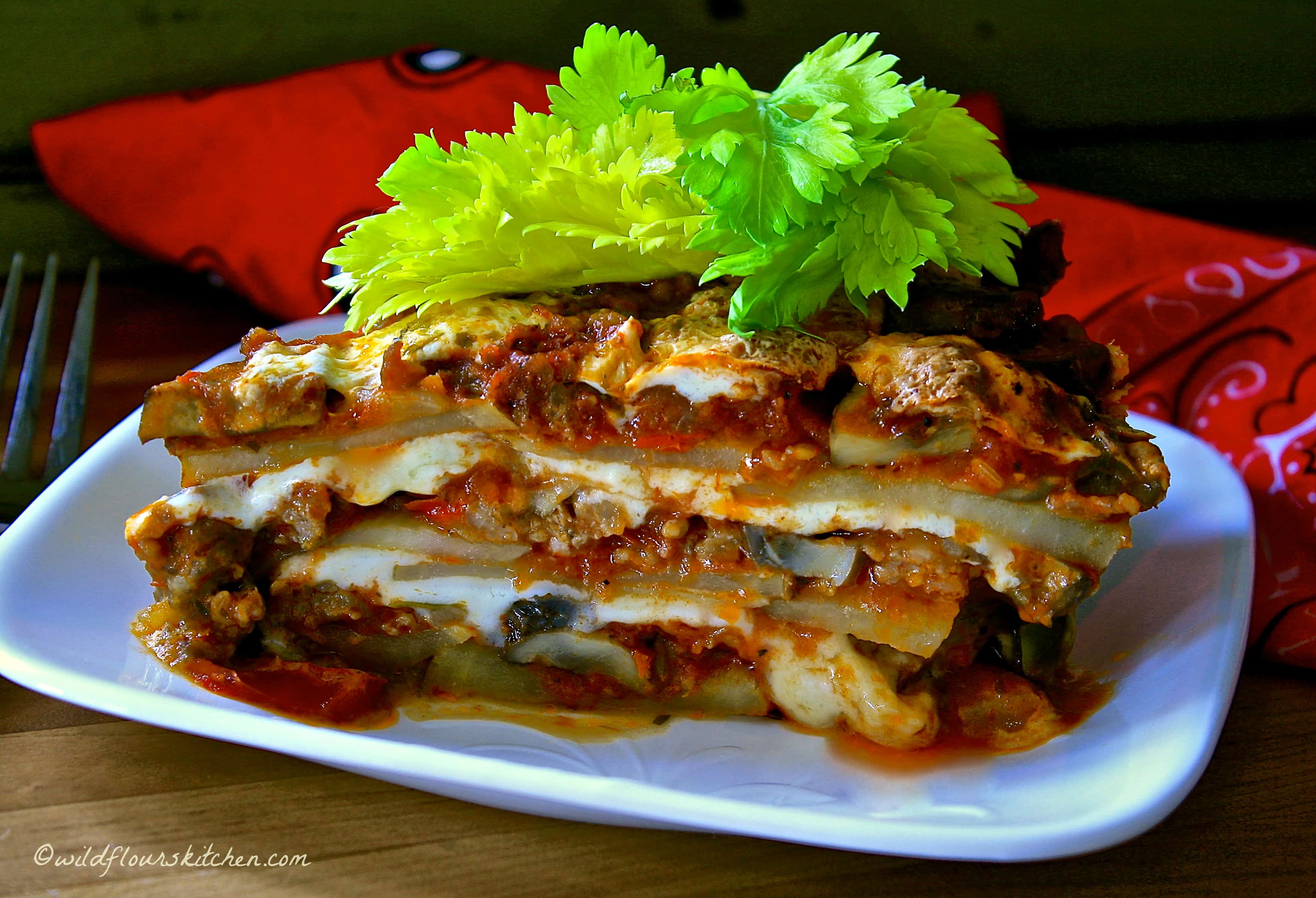 I’m not kidding you. My unbelieving hubby is now a trusting believer that lasagna can, oh yes indeedy, be made with glorious layers of potatoes instead of noodles. Yeppersville.