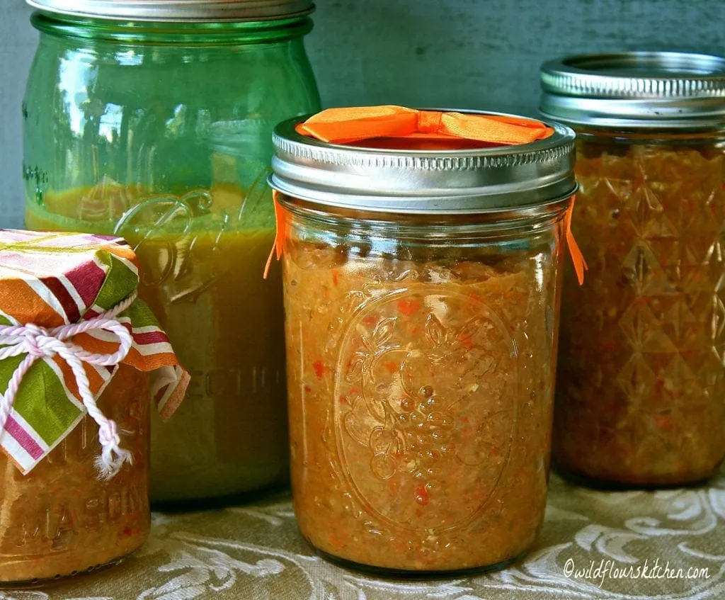 Then just use a slotted spoon to transfer your mixture into a colander placed over a bowl to drain, and run it through the ol’ food processor! Ladle into jars leaving headspace at the top, and just freeze. You don’t even have to can this one!