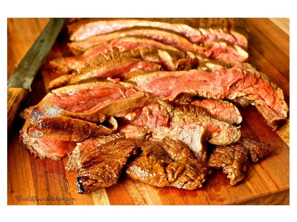 Flank steak is a tough cut. It is. But if you just marinate it, and toss it onto a screaming hot grill and sear it on both sides, it turns into a VERY tasty cut of beef!! The only thing to remember, besides not overcooking it, is to slice it very thinly against the grain after letting it rest when removed from the grill. It’s as simple as simple gets, and a GREAT cut of meat if you don’t overdo it. Just keep it simple as I have done here, and you’re good to go!