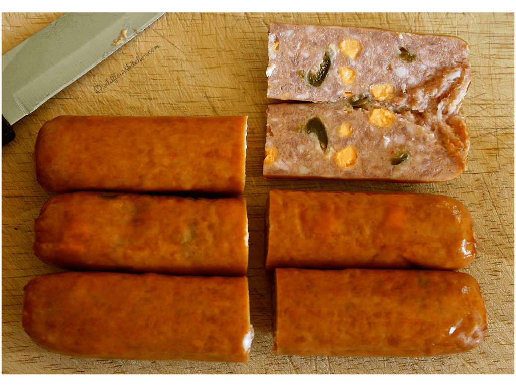 I started with some J-Ville Jalapeño & Cheddar Smoked Sausages that had been in the freezer since spring! I just had never gotten around to using them, (and didn’t have any propane to grill this year). So they just kept getting pushed to the side.