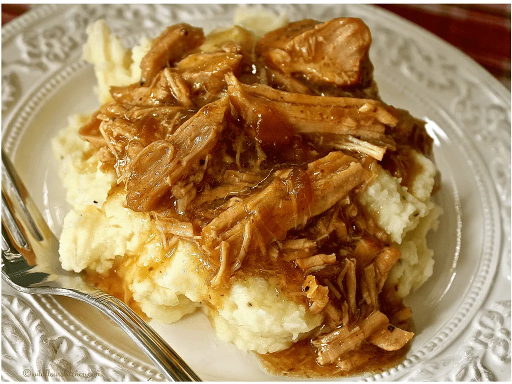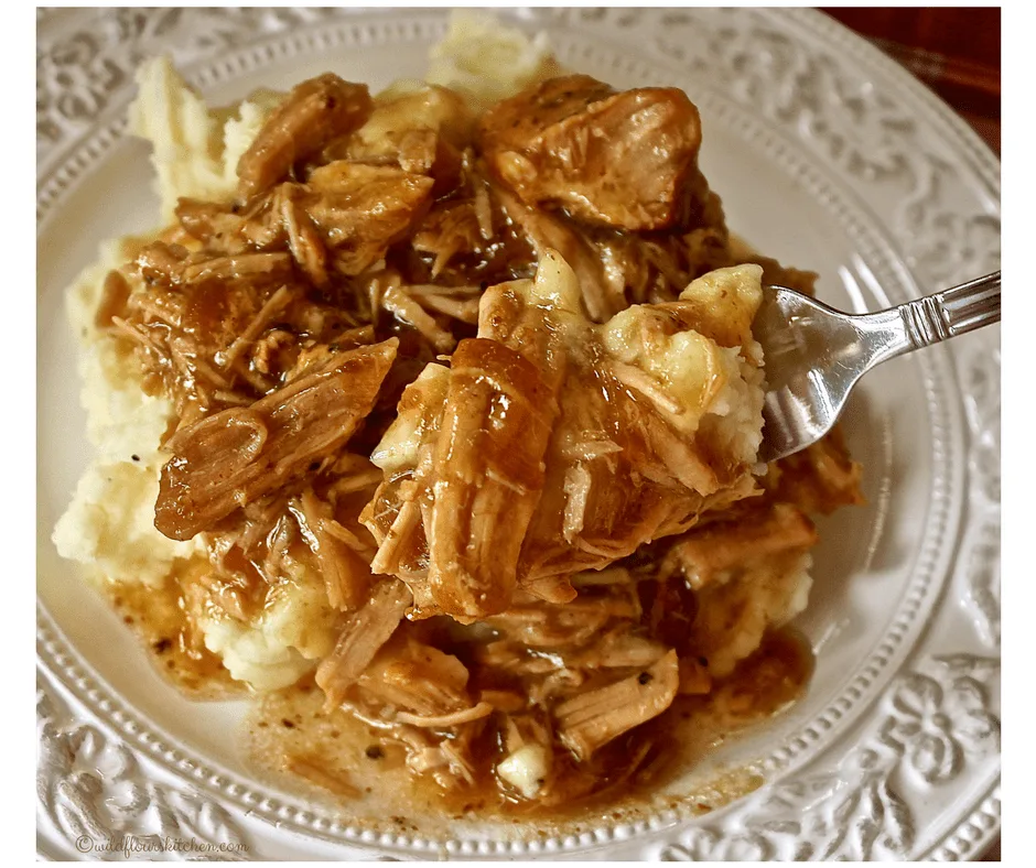 The meat is SO tender and juicy, and just melts in your mouth! And the gravy? Absolutely delicious!!