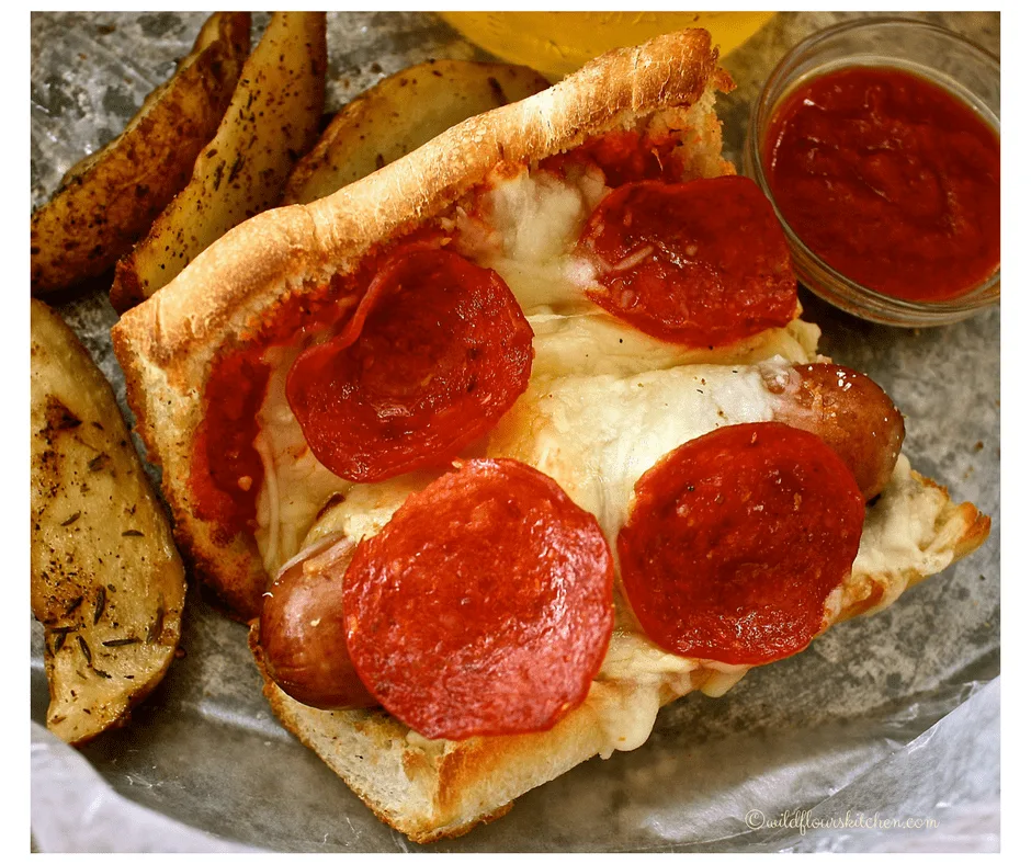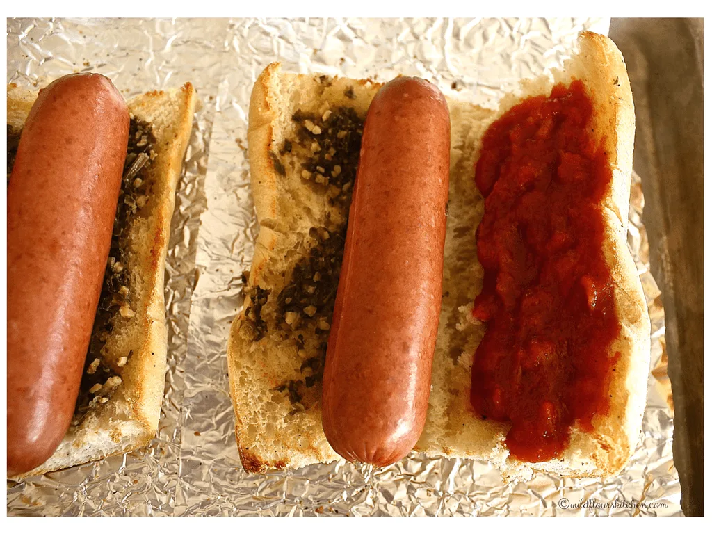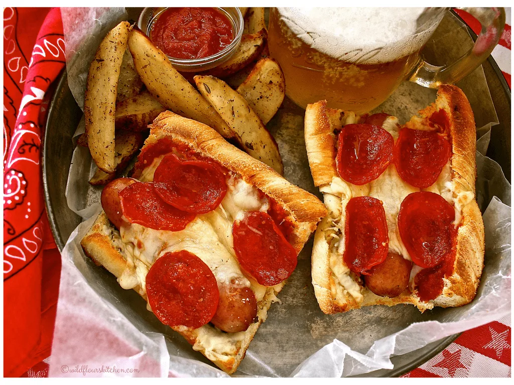 Pesto & Pepperoni Pizza Dogs on Garlic Bread