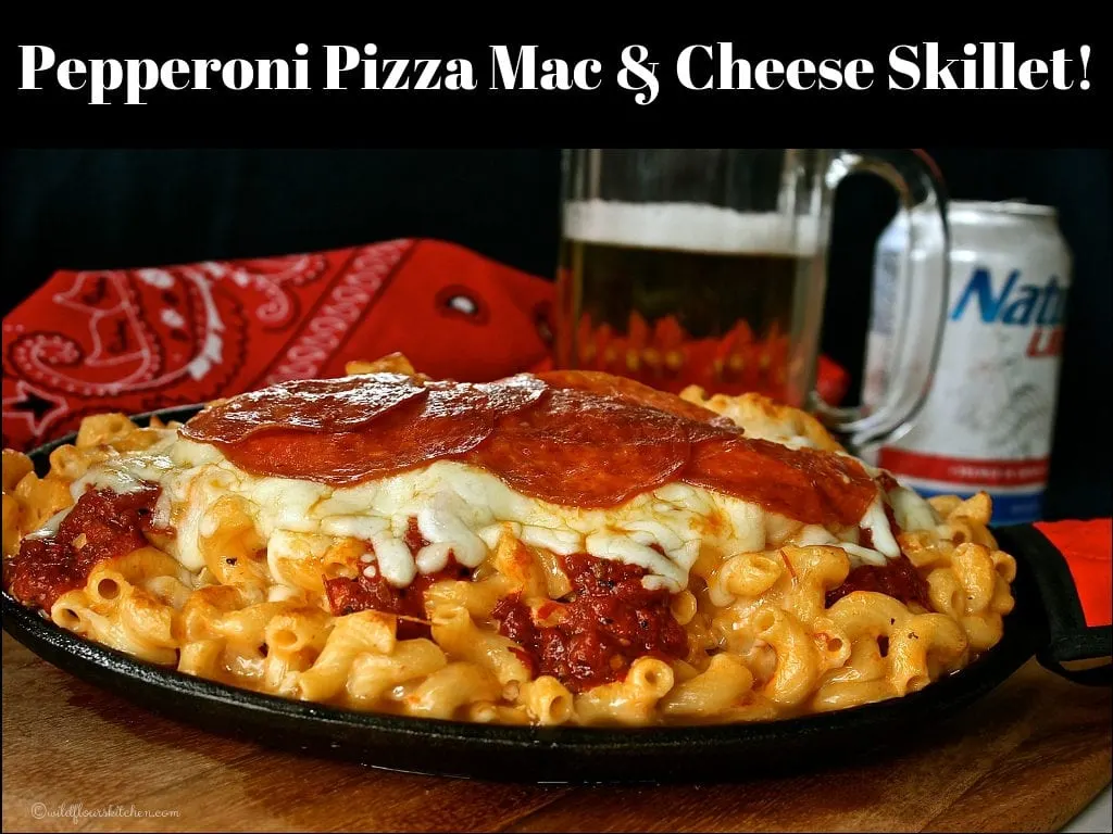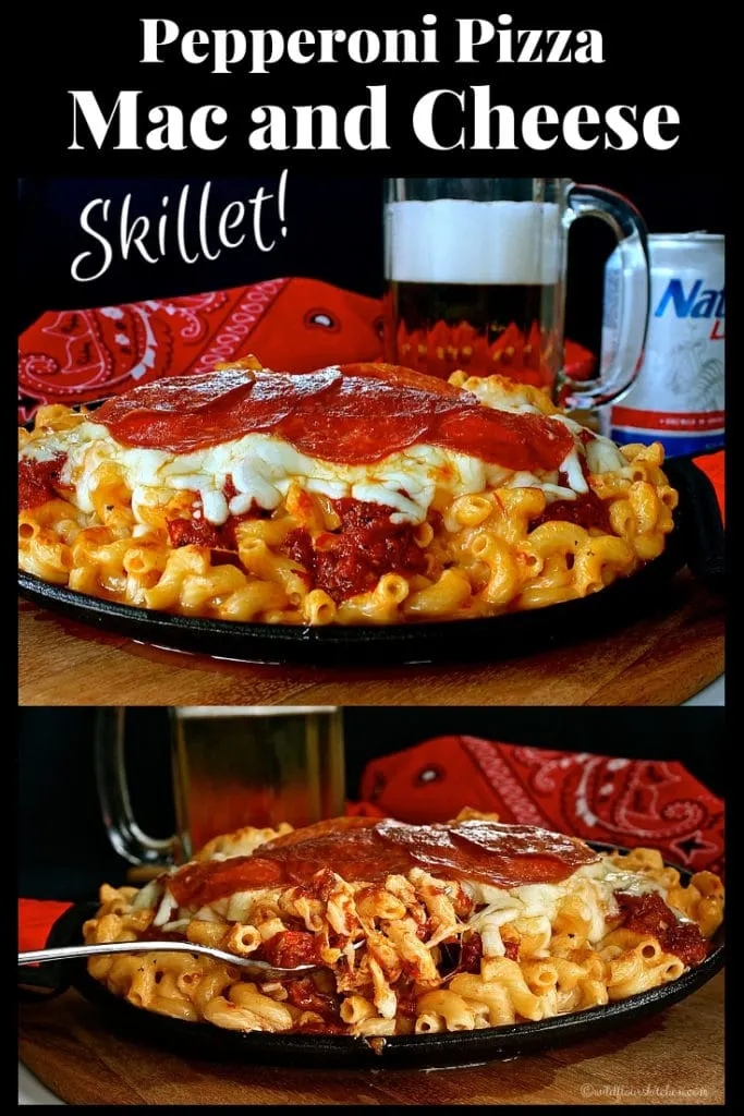 Weeknights just got a whole lot better with this smashup of two favorites in one, Pepperoni Pizza Mac and Cheese Skillet! Rich and creamy, loaded with cheese, super easy to make, and you can add whatever pizza toppings you like! Turn your boring Monday night into something fun that the whole family will enjoy!