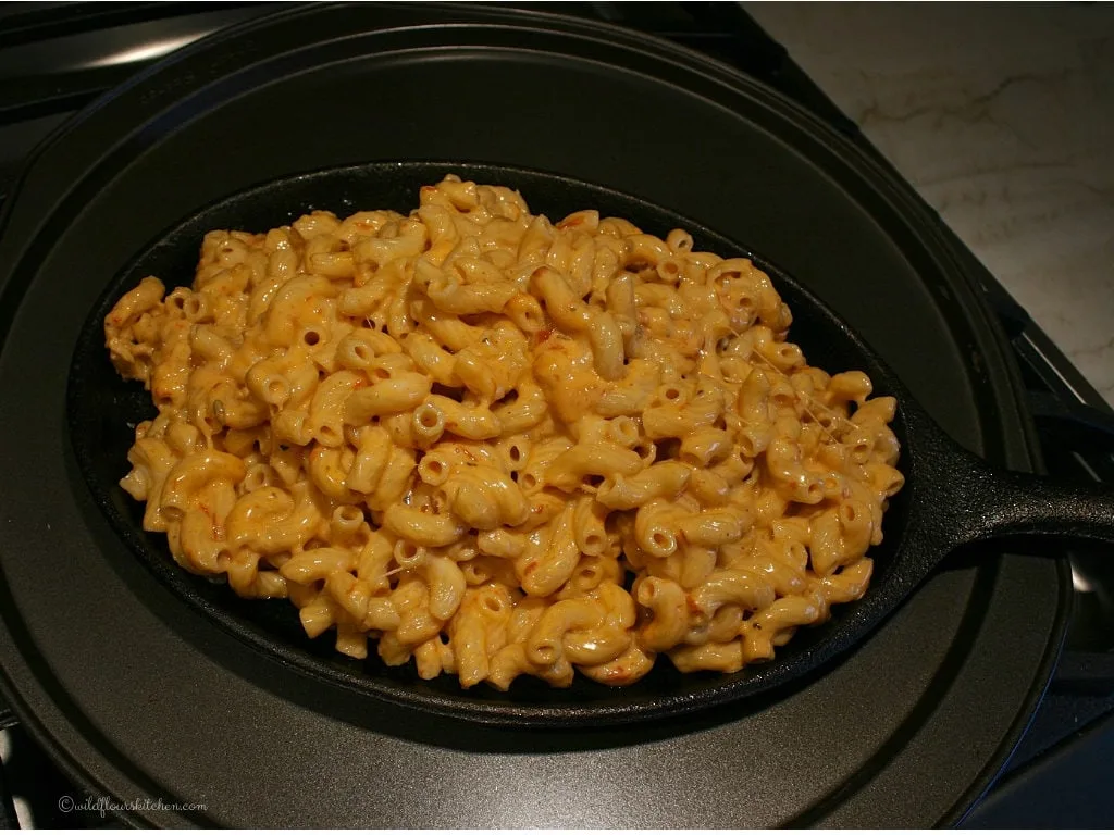 Once the mac ‘n cheese was done, I piled it onto one of my little single-serving, cast iron fajita pans for extra fun!
