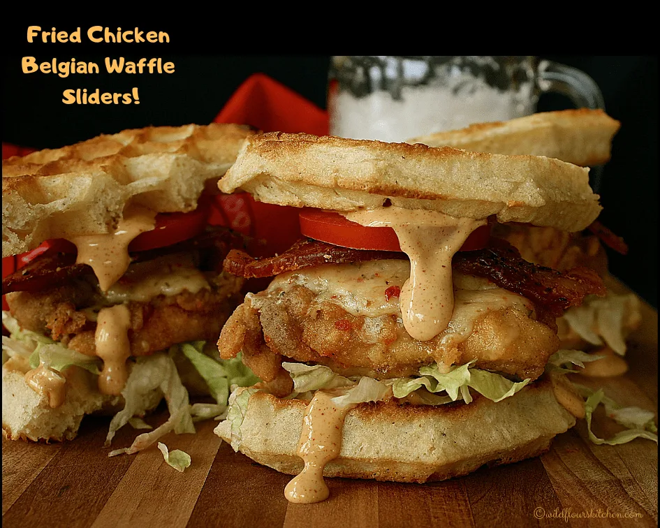 Fried Chicken Belgian Waffle Sliders with Bacon and Cheese