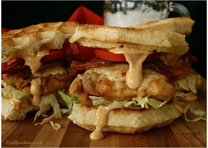 Put down the honey and maple syrup, that’s “yesterday’s” sandwich! These Fried Chicken Belgian Waffle Sliders with Bacon and Cheese are LOADED with wonderful flavors and even have a secret sauce that takes them right over the top! PERFECT game day food for the upcoming Super Bowl!!