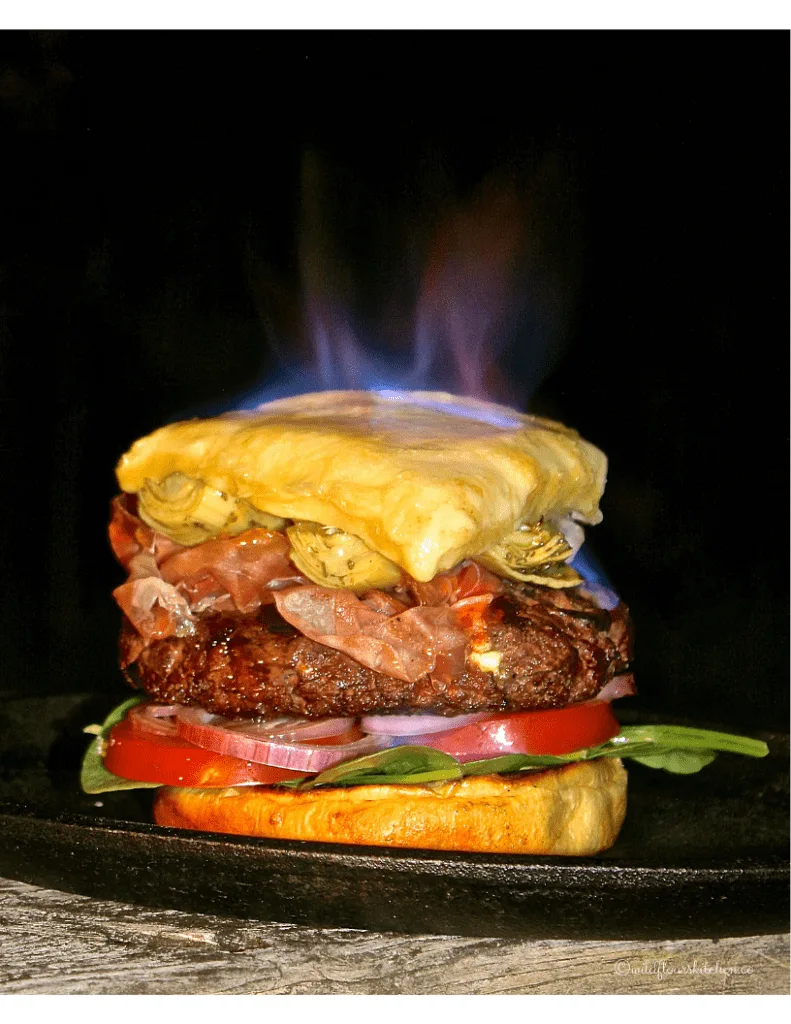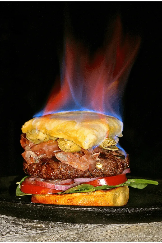 The flavors in this burger sounds so delicious. Even without setting it on fire it looks epic.